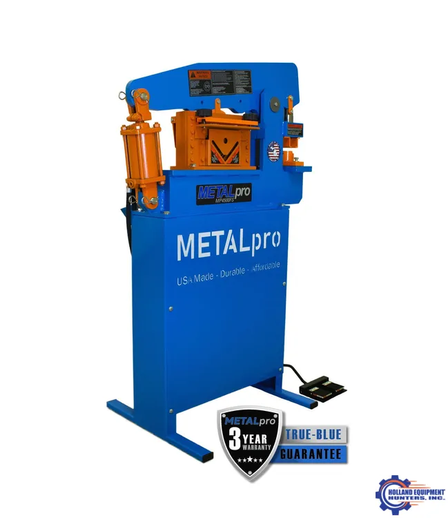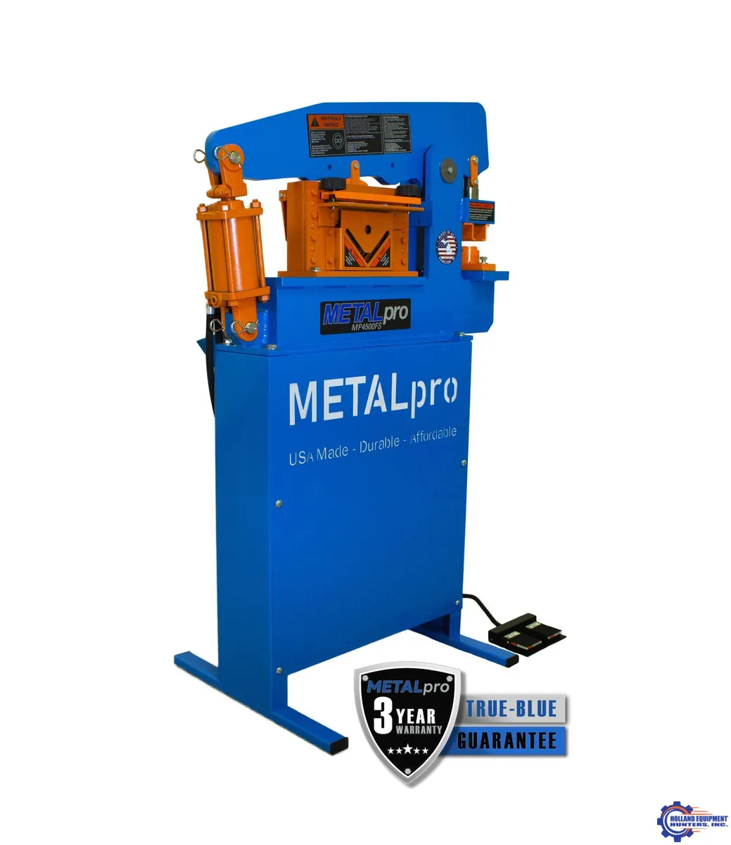 The MADE IN USA METALpro MP4500FS has been called the Swiss Army knife of iron-workers. This is our most popular model and rightfully so, with an impressive 45 tons of power that runs on only 110 Volts. We believe big potential does not need to have a big price tag. The MP4500FS comes equipped with our 8” 3-in-1 cutting shear, foot-switch control, and punch station. This machine can handle it all with our wide variety of accessories, the MP4500FS has you covered.