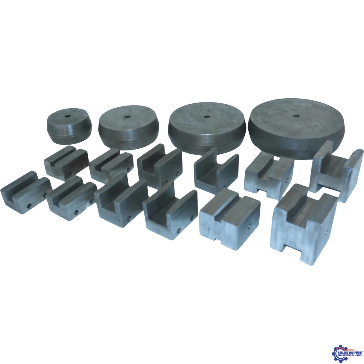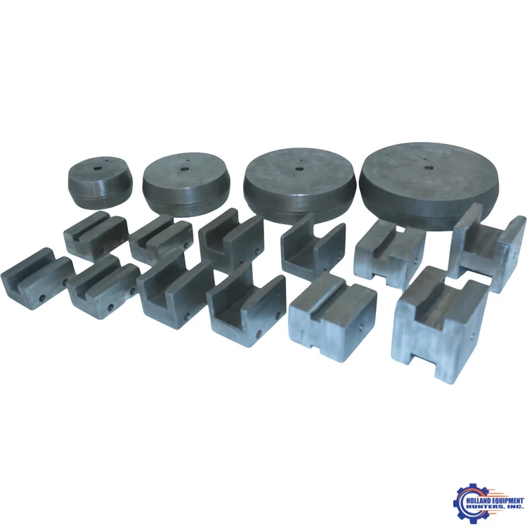 This set includes the rotating, stationary and moving dies to bend the following square tube sizes; 1/2″, 5/8″, 3/4″, 1″, 1-1/4″, 1-1/2″, 1-3/4″, and 2″.