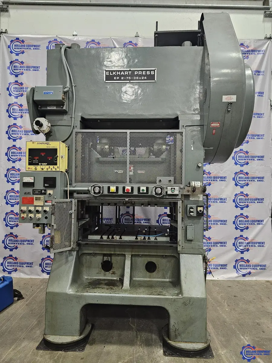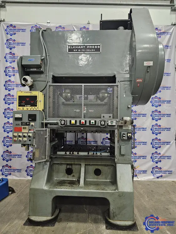 L&J EP2-75-36x24 75 Ton Straight Side Press, 1993 model (Reconditioned). Features a 75T tonnage, 3" stroke, and a 36"x24" bed. Offers double crank operation with an air clutch for enhanced performance. Ideal for versatile industrial use.