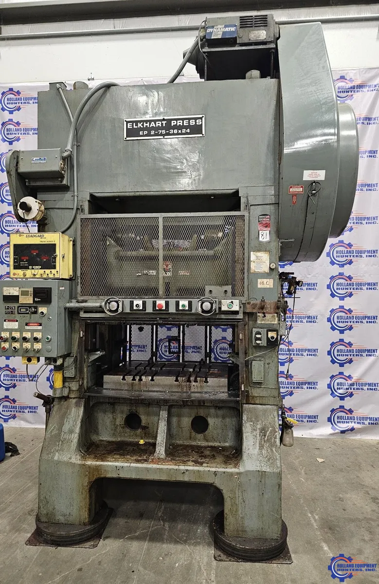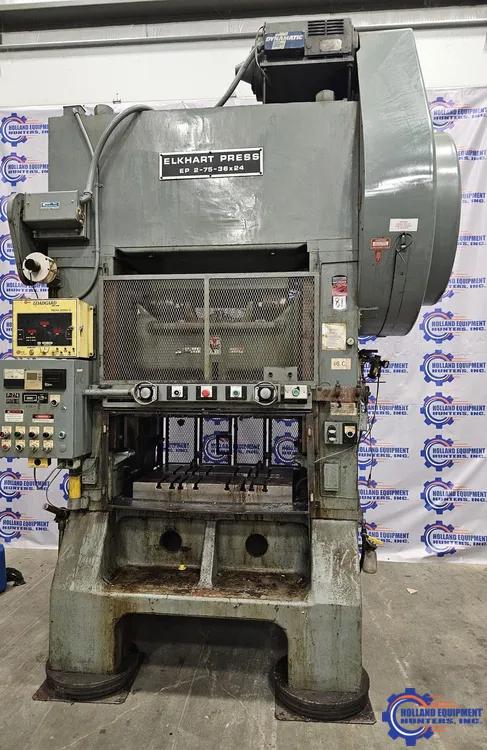 L&J EP2-75-36x24 straight side double crank press, 1993 model, 75T capacity, 3" stroke. Features a 36" x 24" bed and equipped with an air clutch.